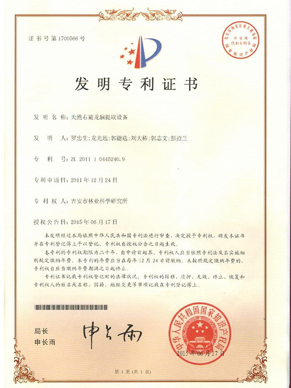 本公司成立于1997年,位于中國(guó)江西省吉安市井岡山國(guó)家農(nóng)業(yè)科技園區(qū)。是從事龍腦樟種植、天然冰片的研發(fā)、加工生產(chǎn)為一體的國(guó)家高新技術(shù)企業(yè)。是我國(guó)生產(chǎn)天然冰片較早,資質(zhì)設(shè)備齊全,生產(chǎn)規(guī)模較大的公司,也是目前全球產(chǎn)能較大的公司。本公司擁有原產(chǎn)地資質(zhì)的龍腦樟種源,有適宜龍腦樟生長(zhǎng)的土地,有自主研發(fā)的龍腦樟快繁技術(shù)和原料林管護(hù)技術(shù),有專(zhuān)利制取方法及提取設(shè)備,有藥品GM...